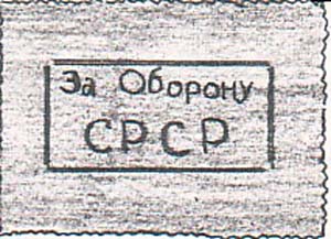 1930 1930(?) г. Разм. рамки 37 х 17,5 мм. Одноцветная печать на лиловой бумаге. Нерегулярная зубц. В прямоугольной рамке текст в две строки на украинском языке: «За оборону СССР».