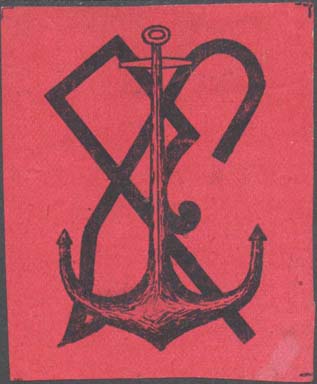 1917 1917(?) г. Разм. 54 х 63 мм. Одноцветная печать на сероватой бумаге с фоном. В центре на розовом фоне якорь на фоне скрещенных букв «С» и «Р».