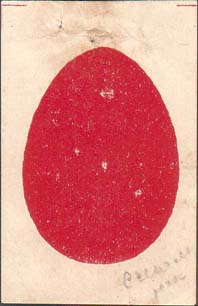 1915 1915(?) г. Виньетка в форме яйца разм. 37 х 54 мм. Одноцветная печать на желтоватой бумаге. Пасхальное яйцо.