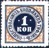1915 1915 г. Разм. рамки 22 х 22 мм. Двухцветная печать на белой бумаге. Без клея. Зубц. 11 1/2. В центре в круге номинал, по периметру круга текст: «Общество «Союз Копейки в Тифлисе»».
