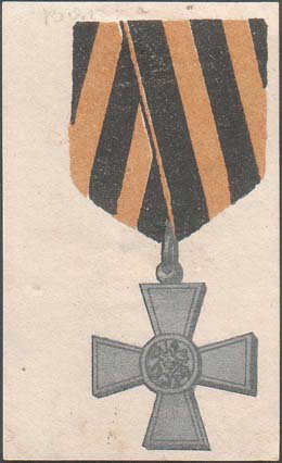 1915 1915(?) г. Разм. 43 х 71 мм. Трехцветная печать на белой бумаге. В центре Георгиевский крест на колодке.