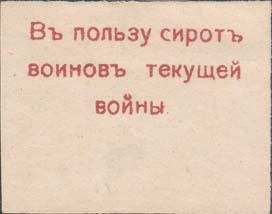 1915 1915(?) г. Разм. 46 х 35 мм. Одноцветная печать на плотной белой бумаге. В центре текст в три строки: «В пользу сирот текущей войны».