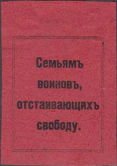 1917 1917 г. Размер 49 х 55 мм. Одноцветная печать на тонкой красной бумаге. В двойной прямоугольной рамке разм. 30 х 37 мм в центре текст в четыре строки: «Семьям воинов, отстаивающих свободу».