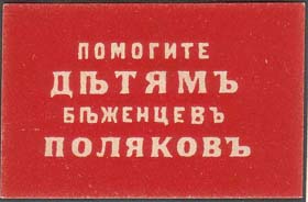 1916 1916(?) г. Разм. 46 х 29 мм. Одноцветная печать на белой бумаге. В центре текст в четыре строки: «По-могите детям беженцев поляков».