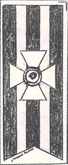 1917 1917 г. 05.07.1917 г. Разм. 31 х 74 мм. Двухцветная печать на плотной белой бумаге. В центре вертикальная георгиевская лента с вырезом в нижней части в форме фестона. В центре ленты Георгиевский крест. Слева внизу параллельно краю ленты мелким шрифтом выходные данные: «Лит. Зархина».