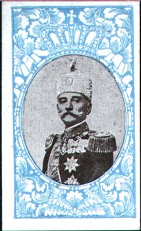 1915 1915 г. 23.11.1915 г. Разм. рамки 30 х 52 мм. Трехцветная печать на толстой белой гладкой бумаге. В декоративной рамке из орнамента в центре в овале портреты монархов.