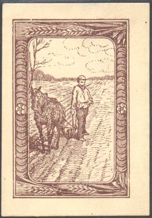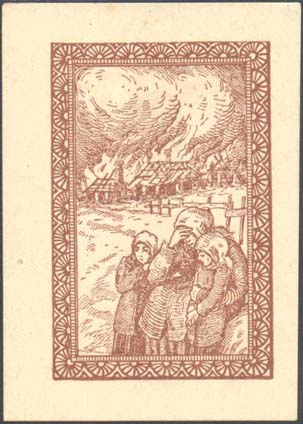 1915 1915 г. Разм. рамки 39 х 59 мм. Одноцветная печать на бумаге различного качества. В двойной декора-тивной рамке различные рисунки. Сбор в пользу беженцев.