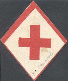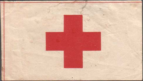 1915 1915(?) г. Ромб разм. 40 х 42 мм. Одноцветная печать на толстой белой бумаге. В рамке в форме ромба в центре красный крест.