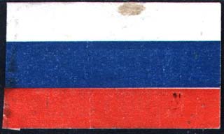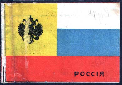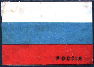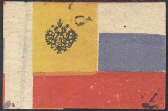 1914 1914 г. Разм. 56 х 37 мм. Многоцветная двухсторонняя печать на тонкой белой бумаге. На лицевой стороне новый государственный флаг России. Слева белое поле шириной ≈ 10 мм. На оборотной стороне текст в две строки: ««На помощь жертвам войны»».