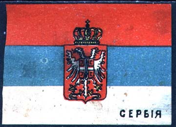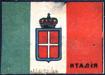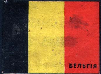 1915 1915 г. 01.05.1915 г. Виньетки в виде флагов стран-союзниц России в Первой мировой войне. Разм. ≈ 58 х 42 мм. Двухцветная, трехцветная и многоцветная двухсторонняя печать на белой бумаге. На лицевой стороне в правом нижнем углу название страны. На оборотной стороне черный текст в две строки: «На помощь жертвам войны». Ниже текст в одну строку мелким шрифтом: «Москва, Маросейка, д.14. Тел. 60-64».
