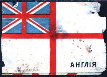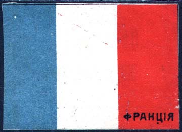 1914 1914(?) г. Разм. 39 х 25 мм. Двухцветная печать на желтоватой бумаге. Виньетки в виде флагов стран-союзниц России в Первой мировой войне.