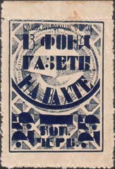 1924 1924(?) г. Разм. рамки 33 х 36 мм. Одноцветная печать на белой глянцевой бумаге. Зубц. 11 1/2. С клеем. В центре на фоне декоративных элементов текст в три строки: «В фонд газеты На вахте». Сверху текст: «Взамен квитанции о взносе». Внизу номинал.