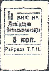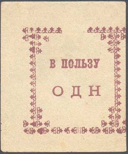 1929 1929 г. Разм. рамки 28 х 36 мм. Одноцветная печать толстой бумаге различных цветов. В прямоугольной рамке в центре номинал. Сверху текст на украинском языке в три строки: «Ты внес на ликвидацию неграмотности». Внизу текст на украинском языке: «Райсовет ОДН».
