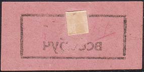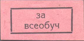 1931 1931 г. 10.03.1931 г. Разм. 49 х 24 мм. Одноцветная печать на розовой бумаге. В центре в прямоугольной рамке разм. 36 х 15 мм текст в две строки: «За всеобуч».