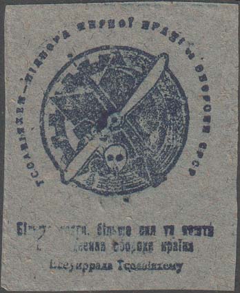 1931 1931 г. Разм. 52 х 65 мм. Одноцветная печать низкого качества на бумаге различных цветов. В центре эмблема ОСОАВИАХИМ. По окружности текст на украинском языке: «ОСОАВИАХИМ – опора мирного труда и обороны СССР». Под эмблемой в центре номинал: «10 к.». Ниже текст в три строки на украинском языке: «Больше внимания, больше сил укреплению обороны страны. Всеукрсовет ОСО-АВИАХИМа».