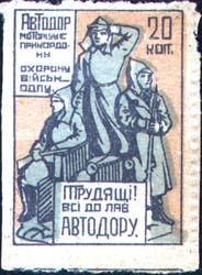 1932 1932 г. Разм. рамки 26 х 36 мм. Трехцветная печать на бумаге различных цветов. Нерегулярная зубц. В прямоугольной рамке в центре трое красноармейцев пограничников. В правом верхнем углу номинал. В левом верхнем углу в прямоугольной рамке текст в семь строк на украинском языке: «АВТОДОР. Моторизуем пограничную охрану войск ОГПУ». Внизу в прямо-угольной рамке текст в три строки: «Трудящиеся! Все в ряды АВТОДОРа».