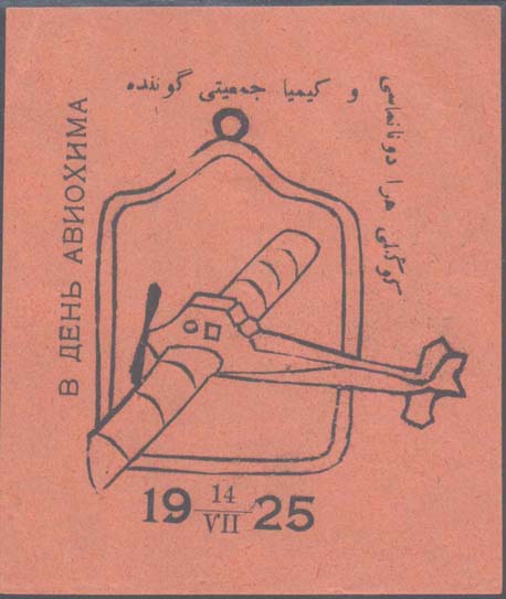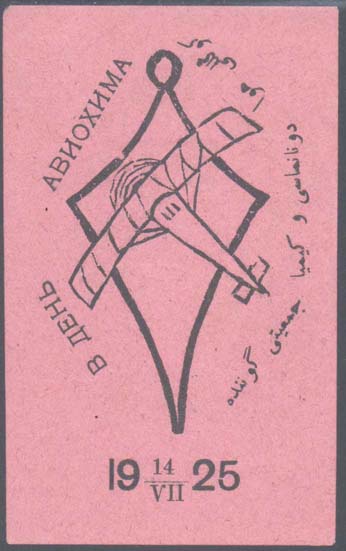 1925 1925 г. 14.07.1925 г. Одноцветная печать на бумаге различных цветов. По периметру текст на русском и татарском (арабским шрифтом) языках: «В день АВИАХИМА». Внизу дата: «19 14/VII 25».