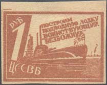 1931 1931 г. Разм. рамка 37 х 25 мм. Двухцветная печать на желтоватой бумаге. С клеем. В центре силуэт подводной лодки в надводном положении. Слева сверху в круглой рамке аббревиатура «ЦС СВБ», справа верху в круглой рамке номинал. Текст в две строки: «Построим подводную лодку «Воинствующий Безбожник»».