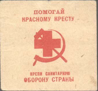 1930 1930 г. 12.12.1930 г. Разм. 56 х 52 мм. Одноцветная печать серо-желтой бумаге. В центре красный крест на фоне серпа и молота. Сверху текст в две строки: «Помогай Красному Кресту». Внизу текст в две строки: «Крепи санитарную оборону страны».