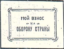 1930 1930 г. 25.11.1930 г. Разм. 67 х 50 мм. Одноцветная печать на розовой бумаге. В двойной декоративной рамке разм. 51 х 33 мм текст в три строки: «Мой взнос на оборону страны».