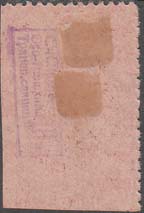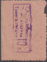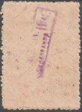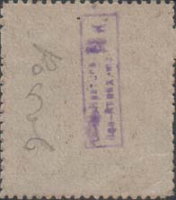 1932 1932(?) г. Второй вспомогательный выпуск. Серо-фиолетовая надпечатка на оборотной стороне текста в две строки в рамке.