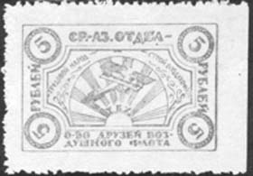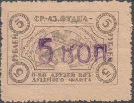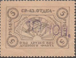 1923 1923 г. Первый республиканский выпуск. Разм. рамки 37 х 24 мм. Одноцветная печать на тонкой желтоватой бумаге. Зубц. 11 1/2. В двойной декоративной рамке самолет-биплан в лучах восходящего солнца и аббревиатура «Т.Б.Х.». Выше полукругом текст: «Трудовой народ, строй Воздухофлот». Сверху между рамками текст: «Ср[едне].-Аз[иатский]. отдел». Внизу между рамками текст в две строки «О-во Друзей Воздушного Флота». По углам номинал в круглых рамках.