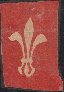1917 1917 г. Разм. 79 х 35 мм. Одноцветная печать на тонкой желтоватой бумаге. В центре на сплошном фоне скаутский значок.