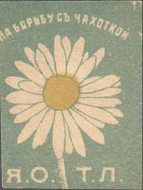 1916 1916(?) г. Разм. 35 х 46 мм. Двухцветная печать на желтоватой бумаге. В центре цветок ромашки. Сверху полукругом текст: «На борьбу с чахоткой». Внизу аббревиатура: «Я.О.Т.Л.».