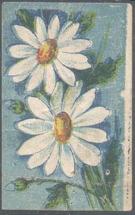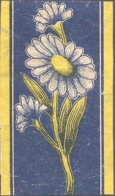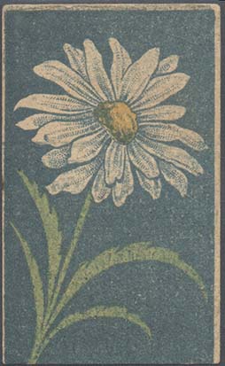 1915 1915(?) г. Разм 32 х 52 мм. Многоцветная печать на белой бумаге. В центре два цветка ромашки с бутонами.