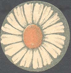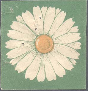 1915 1915(?) г. Разм. 49 х 51 мм. Двухцветная печать на белой бумаге. В центре на сплошном фоне цветок ромашки.