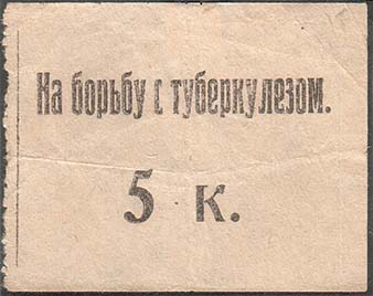 0(?) 0(?) г. Листок из квитанционной книжки разм. 56 х 44 мм. Одноцветная печать на белой бумаге. Левосторонняя нерегулярная зубц. Сверху текст: «На борьбу с туберкулезом». Ниже номинал. Слева вертикальная линия.