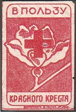 1930 1930(?) г. Разм. рамки 22 х 33,5 мм. Одноцветная печать на белой бумаге. В рамке с закругленными краями в центре красный крест на фоне цветка мака. Сверху текст: «В пользу». Внизу текст: «Красного Креста». Внизу под рамкой мелким шрифтом выходные данные неразборчиво.