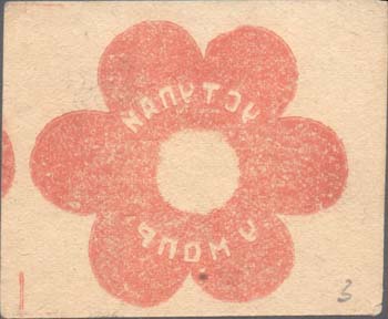 1924 1924(?) г. Разм. 46 х 52 мм. Рисунок аналогичен предыдущему. Двухцветная печать на желтоватой бумаге. Без рисунка и текста на оборотной стороне.