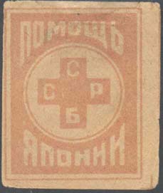 1930 1930(?) г. Разм. рамки 32,5 х 40,5 мм. Одноцветная печать на тонкой желтоватой бумаге. В центре в круглой рамке диаметром 24 мм знак красного креста с буквами аббревиатуры «ССРБ» на перекладинах. Сверху текст: «Помощь». Внизу продолжение текста: «Японии».