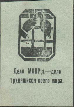 1927 1927 г. Разм. ≈ 45 х 55 мм. Одноцветная печать на бумаге различных цветов и плотности. В центре эмблема МОПР. Внизу различные тексты.