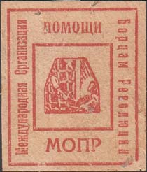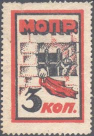 1929 1929 г. 18.03.1929 г. Двухцветная печать на белой бумаге. Зубц. 11 1/2. В двойной прямоугольной рамке разм. 24,5 х 38 мм в центре эмблема МОПР. Сверху аббревиатура «МОПР». Внизу номинал.