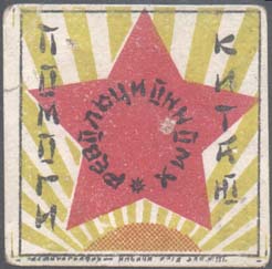 1930 1930(?) г. Разм. 37 х 37 мм. Трехцветная печать на сероватой бумаге с мелованным верхним слоем. В прямоугольной рамке в центре пятиконечная звезда на фоне лучей восходящего солнца. Текст: «Помоги революционному Китаю». Внизу под рамкой выходные данные мелким шрифтом: «Типолитография им. Ильича. Р н/д Зак. №751». По углам знака разграничительные линии.
