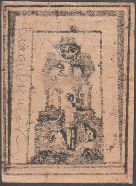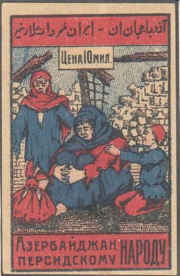 1923 1923(?) г. Разм. рамки 38 х 61 мм. Трехцветная печать на кремовой бумаге. В прямоугольной рамке в центре семья на фоне развалин. Сверху в отдельной рамке текст на азербайджанском языке арабским шрифтом и номинал: «Цена 10 мил[лионов].». Внизу текст в две строки: «Азербайджан персидскому народу».