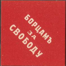 1917 1917 г. Ромб разм. 55 х 55 мм. Одноцветная печать на белой (оттенки) бумаге. Текст в три строки: «Борцам за свободу».