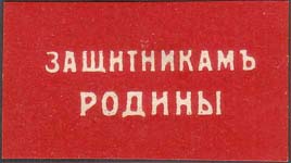1917 1917 г. Разм. 47 х 28 мм. Одноцветная печать на белой бумаге. Текст в две строки: «Защитникам Родины».