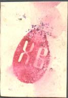 1915 1915(?) г. Разм. 22 х 31 мм. Одноцветная ручная печать на белой бумаге. В центре каучуковым штампом напечатано пасхальное яйцо с буквами: «Х» и «В».