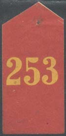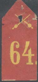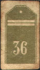 1915 1915(?) г. Виньетка в виде погона разм. 19 х 40 мм. Двухцветная печать на желтоватой бумаге. Погоны со скрещенными мечами сверху и различными цифрами.