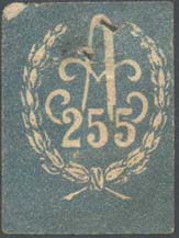1915 1915(?) г. Разм. 26 х 36 мм. Одноцветная печать на белой бумаге. В центре в обрамлении венка вензель «А» и цифры «256».