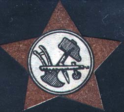 1919 1919(?) г. Разм. 43 х 39 мм. Двухцветная печать на белой бумаге. Виньетка в виде пятиконечной звезды с плугом и молотом в центре.