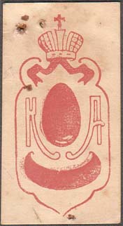1915 1915(?) г. Виньетка в виде папахи с кокардой. Разм. ≈ 32 х 35 мм. Трехцветная печать на белой бумаге.