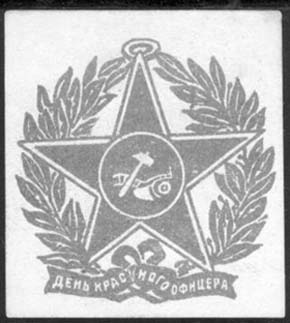 1918 1918 г. 01.11.1918 г. Разм. 36 х 37 мм. Одноцветная печать на с тиснением на темно-розовой бумаге. Звезда с плугом и молотом в обрамлении венка. На ленте венка текст: «День красного офицера».