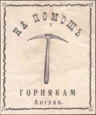 1926 1926 г. 07.07.1926 г. Разм. рамки 47 х 55 мм. Одноцветная печать на белой плотной бумаге. В прямоугольной рамке из волнистых линий в центре кирка. Сверху полукругом текст: «На помощь!». Внизу продолжение текста в две строки: «Горнякам Англии».