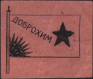 1924 1924(?) г. Разм. 53 х 45 мм. Одноцветная печать на розовой бумаге. В центре флаг ДОБРОХИМ.