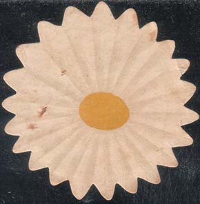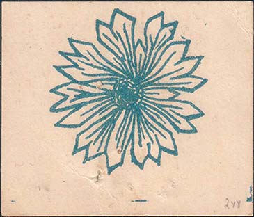 1915 1915(?) г. Виньетка в виде цветка ромашки диам. 48 мм. Двухцветная печать на белой бумаге. Несимметричный цветок ромашки.
