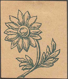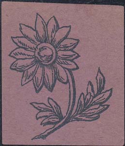 0 0 г. Разм. 41 х 51 мм. Одноцветная печать на бумаге различных цветов. В центре цветок ромашки с толстым стеблем, загнутым влево вниз и двумя листьями.